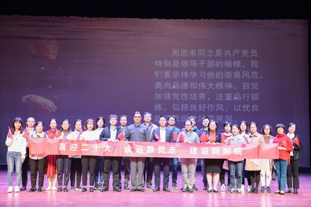 为营造学习先进楷模的良好氛围,激励广大党员干部守初心、担使命,迎接党的二十大胜利召开,10月11日,色漫天堂 举行“喜迎二十大 永远跟党走 建设新附院”主题观剧活动,30余名党员代表前往无锡市人民大会堂观看大型情景话剧《杰出楷模·周恩来》。