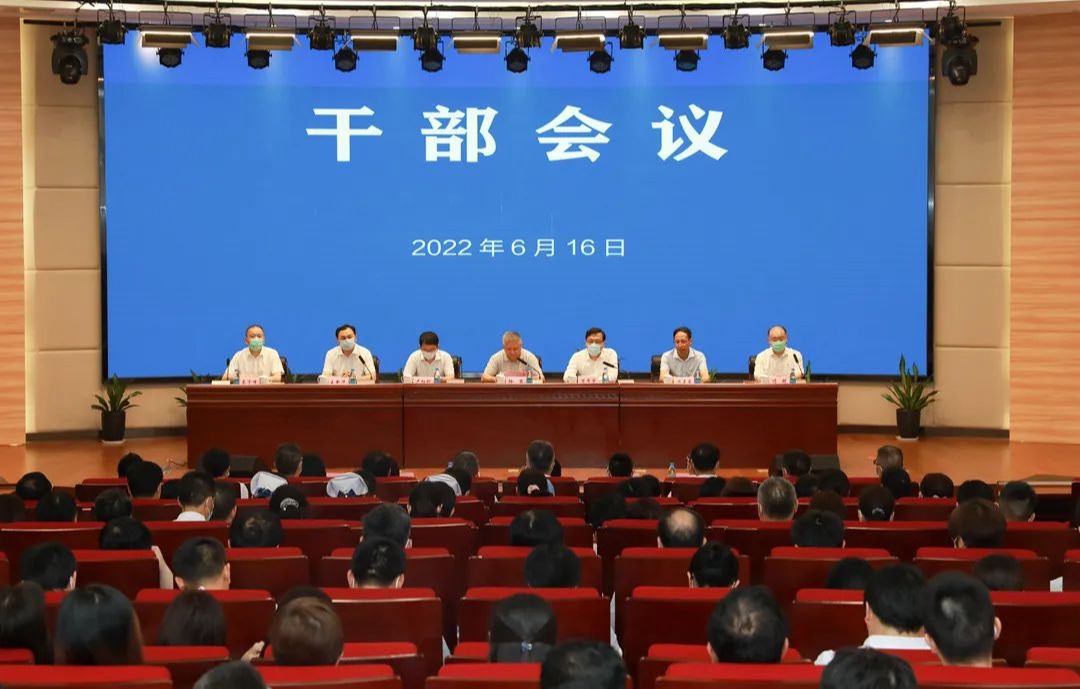 2022年6月16日下午,色漫天堂 在多功能厅召开干部会议。江南大学党委常委、副校长徐岩,市卫生健康委党委书记、主任笪学荣,市委组织部干部二处副处长卢红科,江南大学组织部常务副部长方正泉,市卫生健康委党委副书记王新华出席会议。