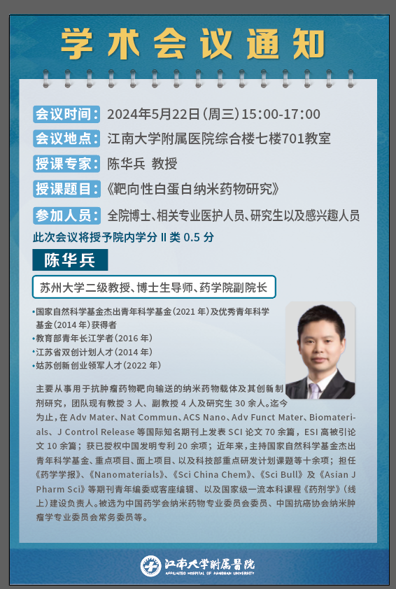 授课题目:《靶向性白蛋白纳米药物研究》